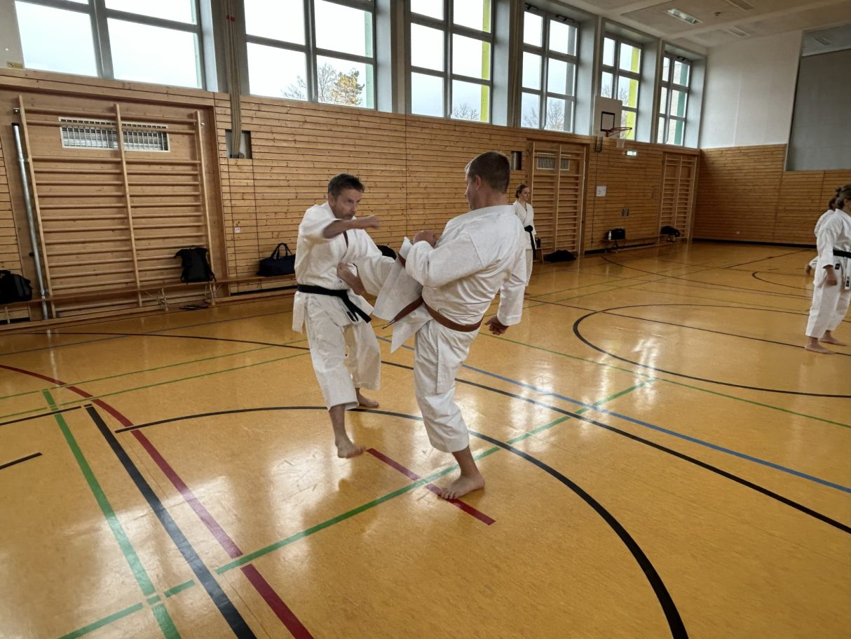 Das Training war sehr praxisbezogen und setzte die Schwerpunkte auf eine realistische Anwendung des Karate in verschiedenen Kampfkonstellationen (frontal und in 8 Richtungen). Der Lehrgang war wie immer ein didaktisches Meisterwerk. Die Lehrinhalte werden in unseren Dojo Trainings natürlich weiter vertieft.